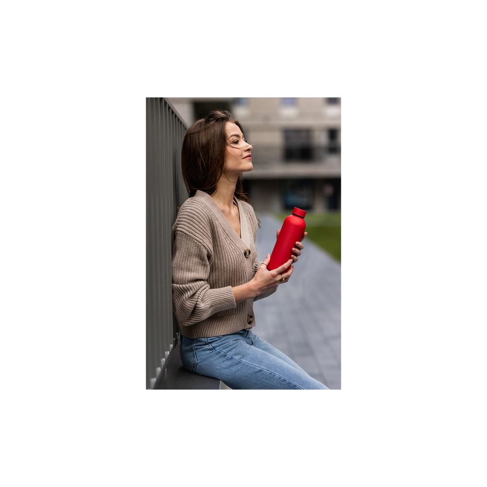 Szczelna butelka próżniowa o przyjemnej w dotyku powierzchni. Wykonana ze stali nierdzewnej. Próżnia pomiędzy dwiema ściankami zapewnia bardzo dobre właściwości termoizolacyjne. Wewnętrzna ścianka wykonana ze stali o podwyższonej jakości 18/8. Butelka nadaje się do zimnych jak i gorących płynów. Utrzymuje temperaturę powyżej 40°C przez 17 godzin.