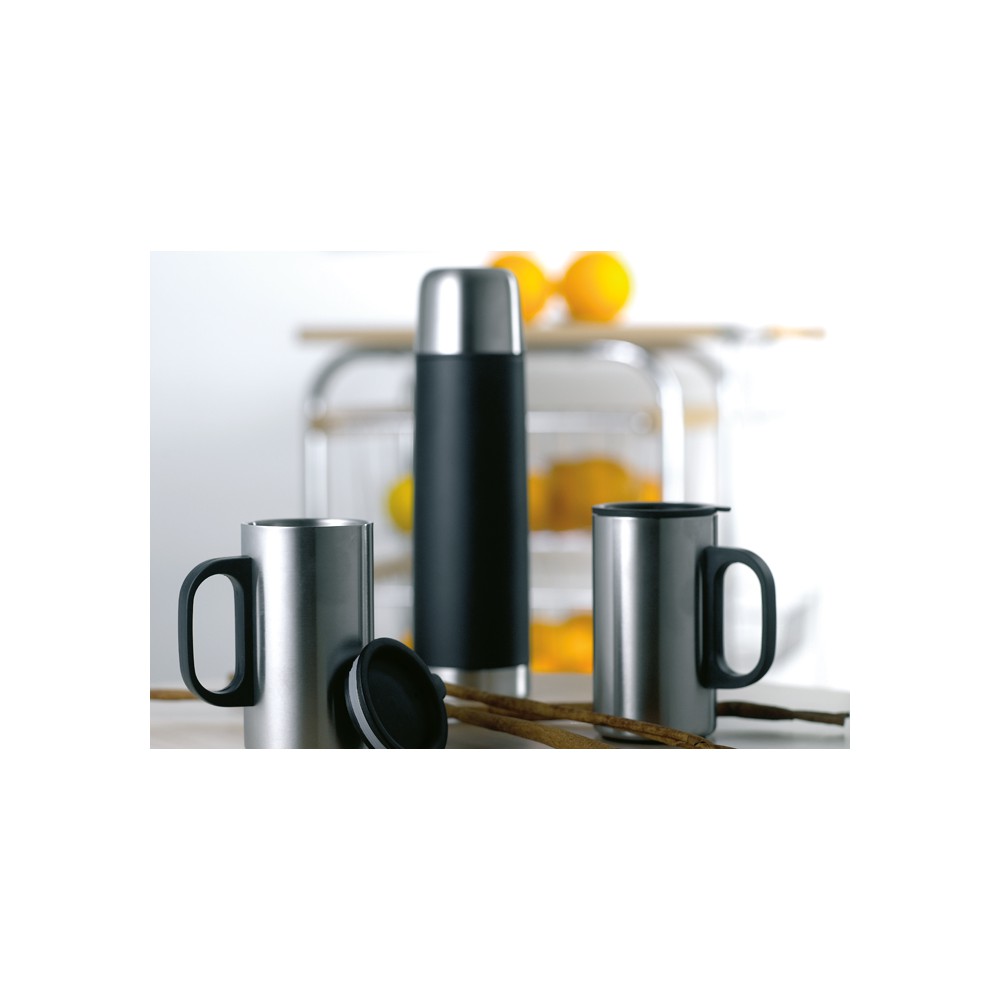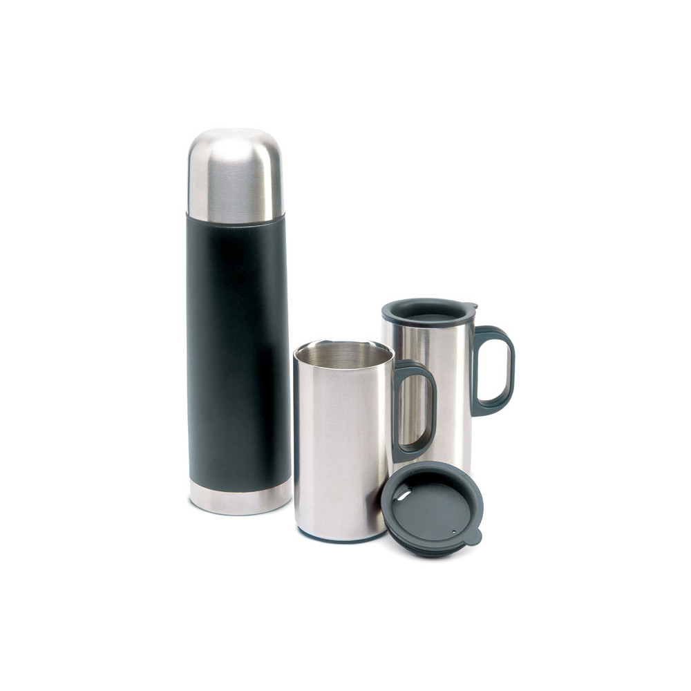 Termos ze stali nierdzewnej (500 ml), podwójne ścianki, w komplecie 2 kubki (220 ml) w ozdobnym pudełku z grubego kartonu.