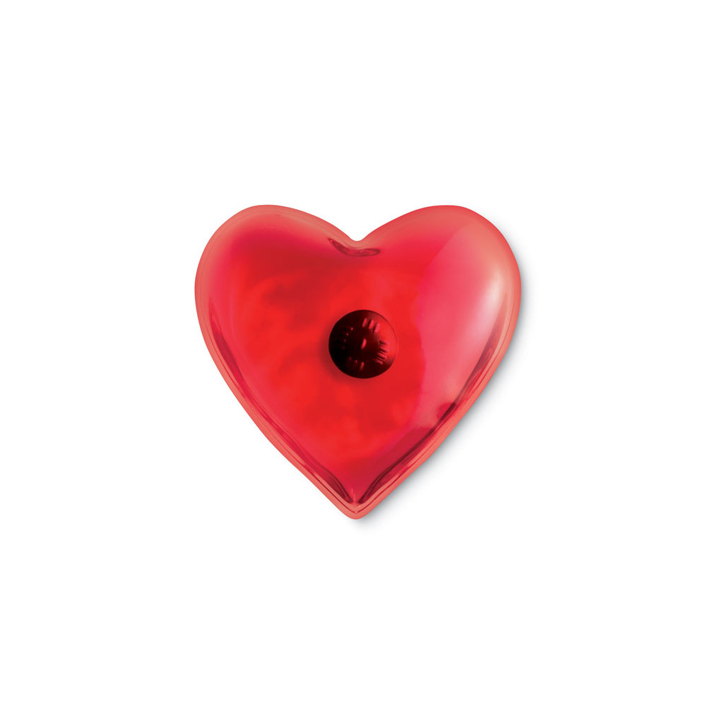 Gorąca podkładka w kształcie serca, błyszczące wykończenie. Aktywuje się po naciśnięciu wewnętrznej metalowej płytki. Nie wymaga baterii. Wielokrotnego użytku.