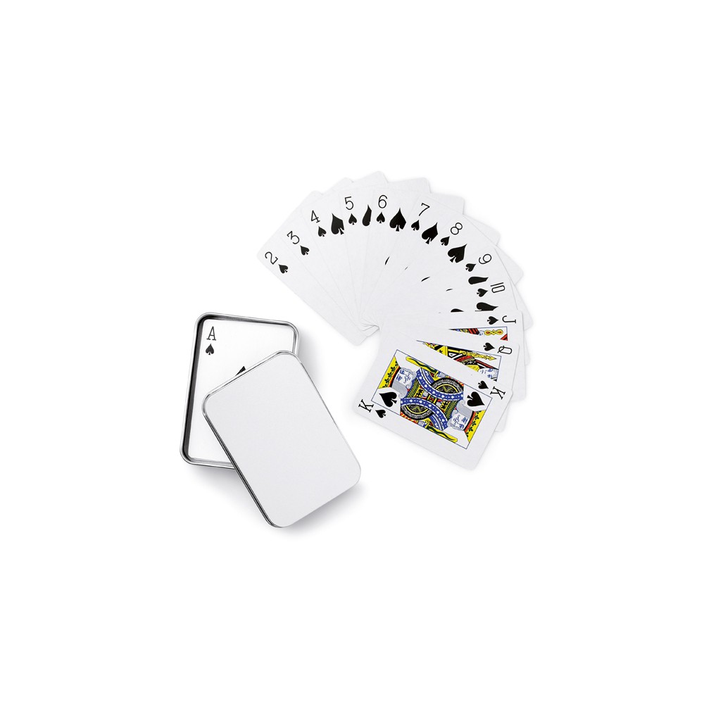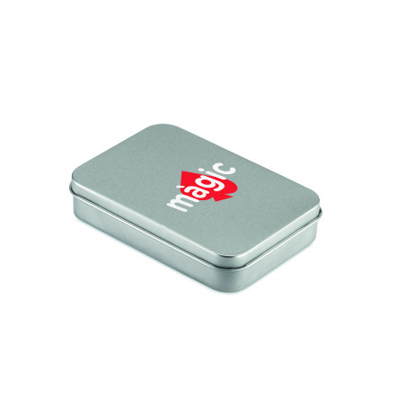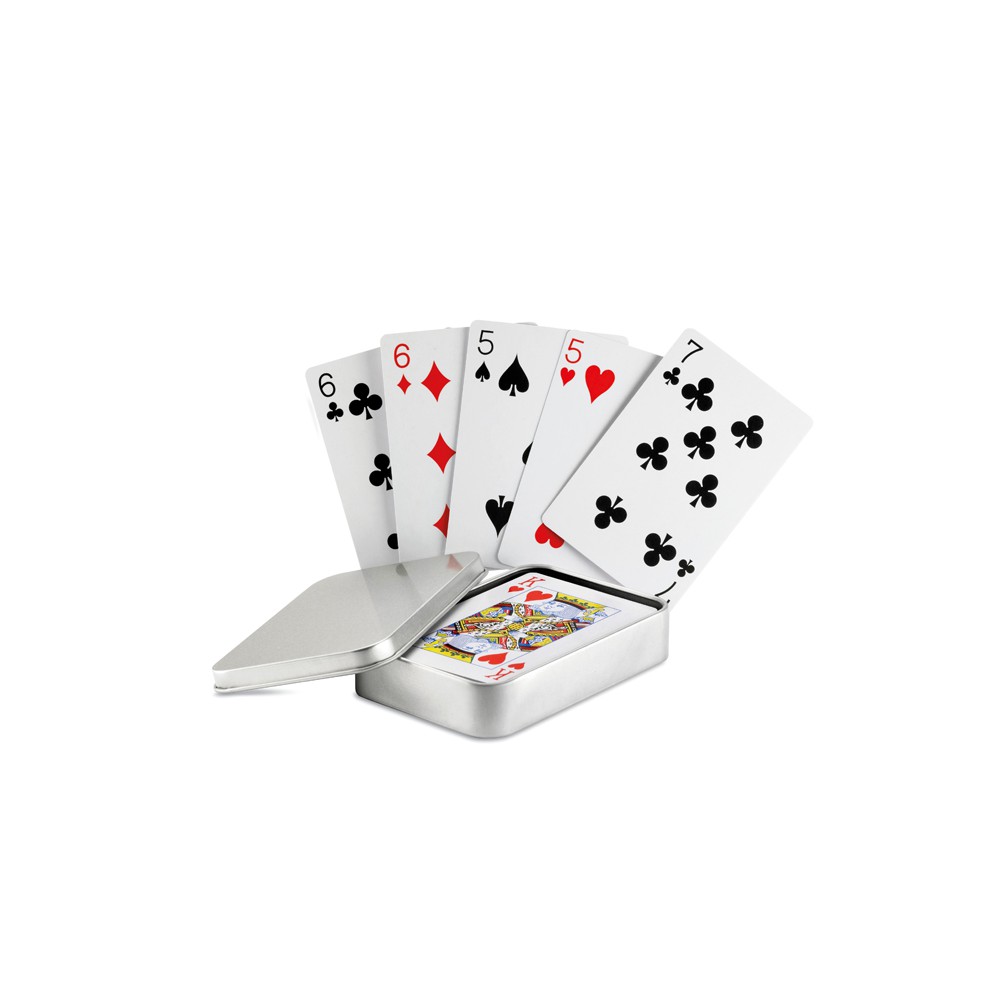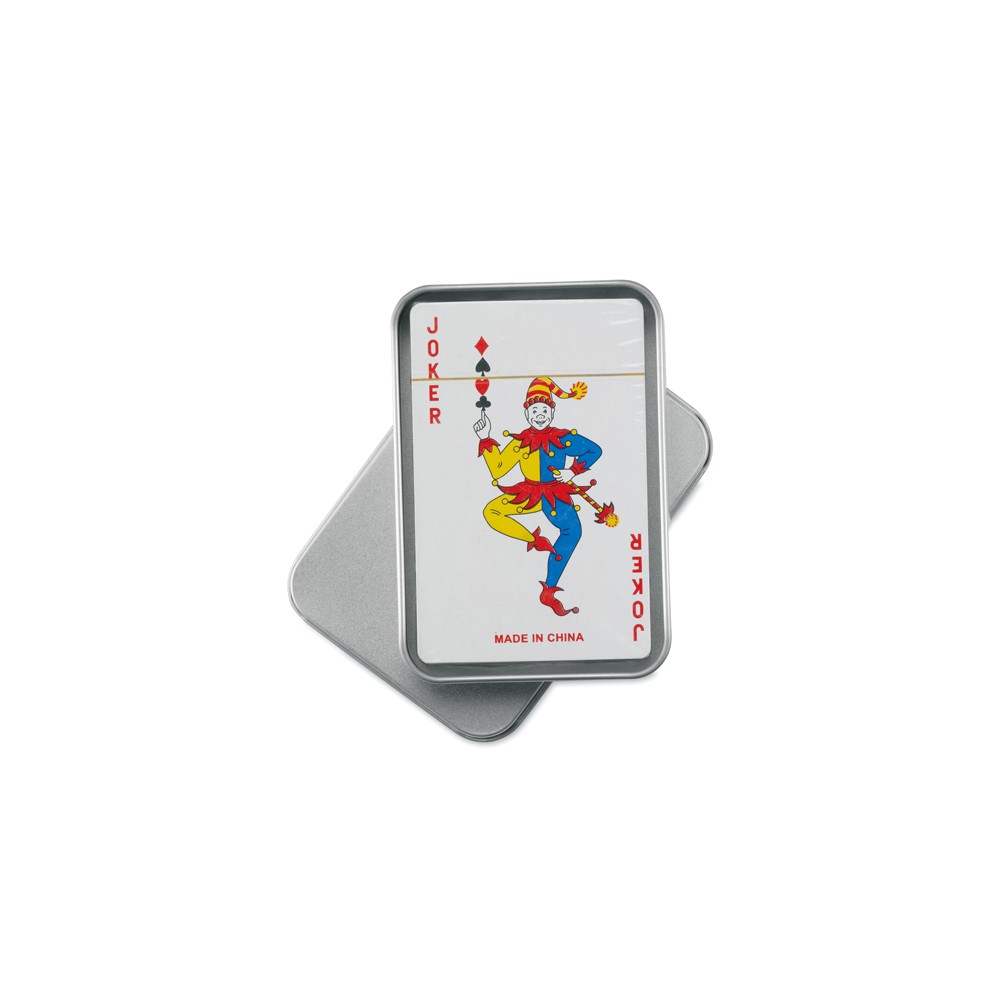 Klasyczne karty do gry, w metalowym, srebrnym pudełku. 54 karty.