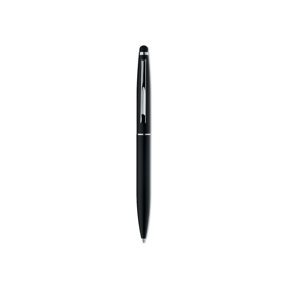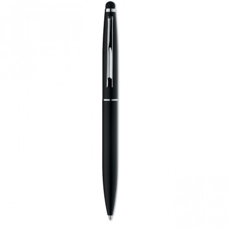 Aluminiowy, przekręcany długopis z rysikiem. Matowe wykończenie. Niebieski wkład.