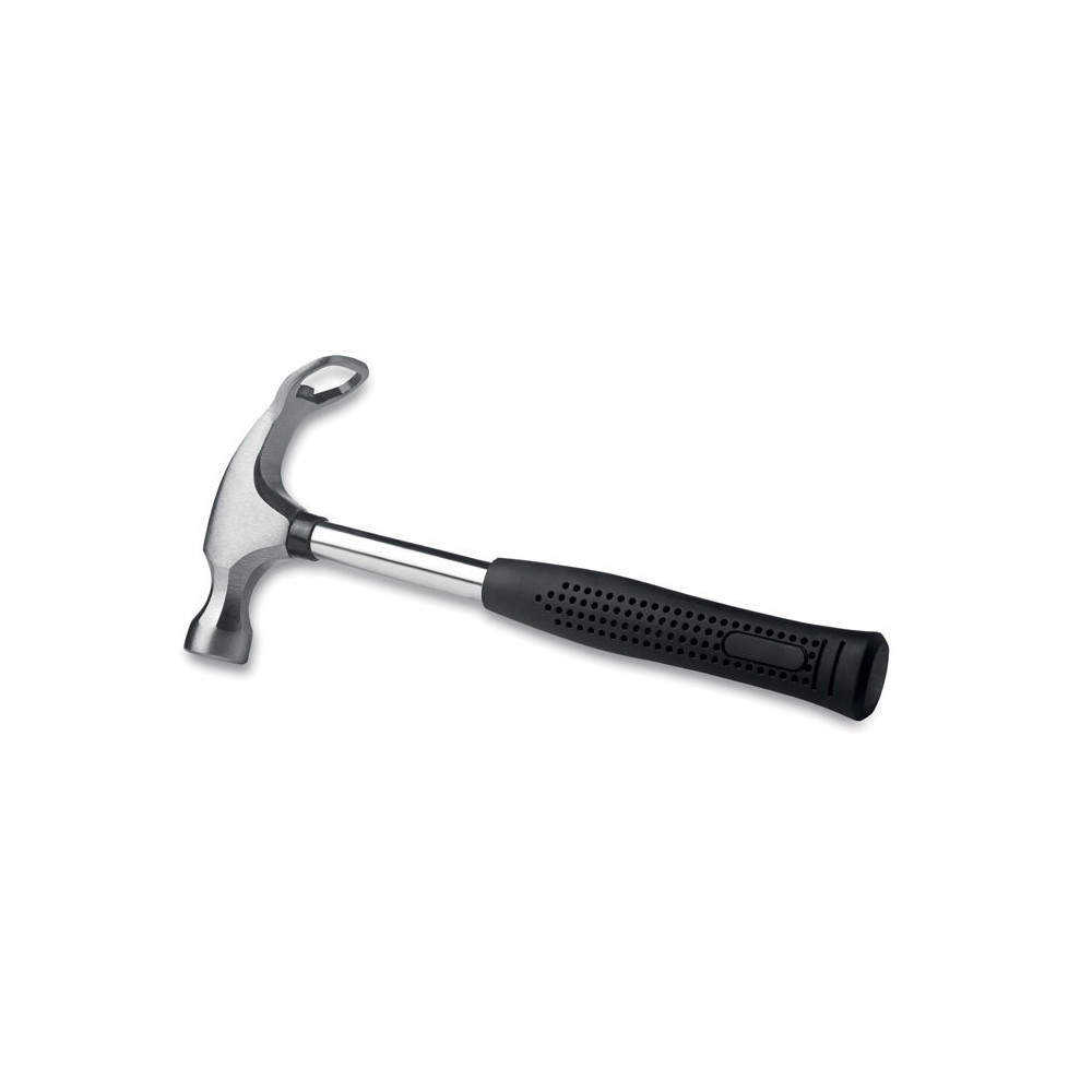Młotek imprezowy z otwieraczem butelek. Wykonany ze stali węglowej. Rączka pokryta termoplastycznym elastomerem.