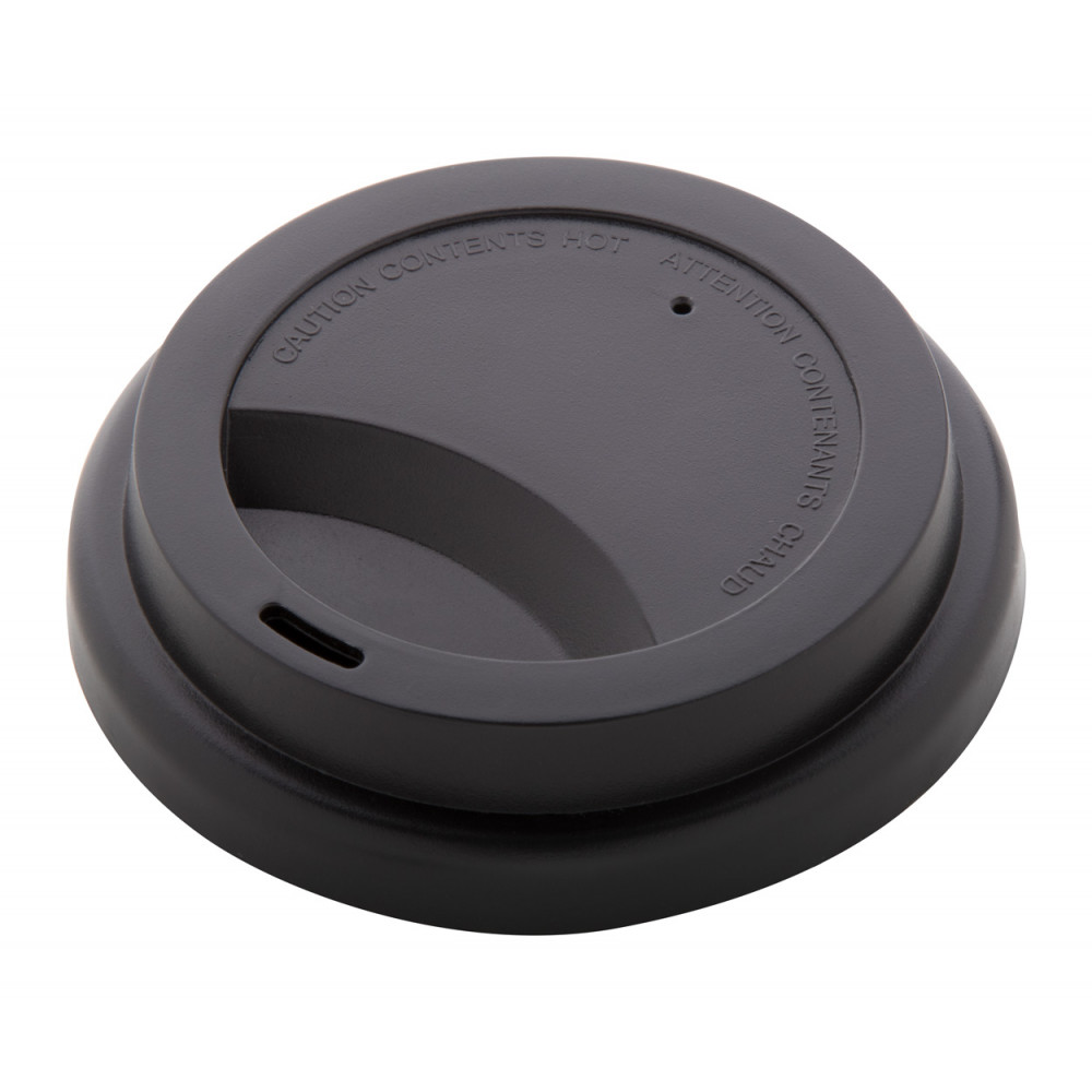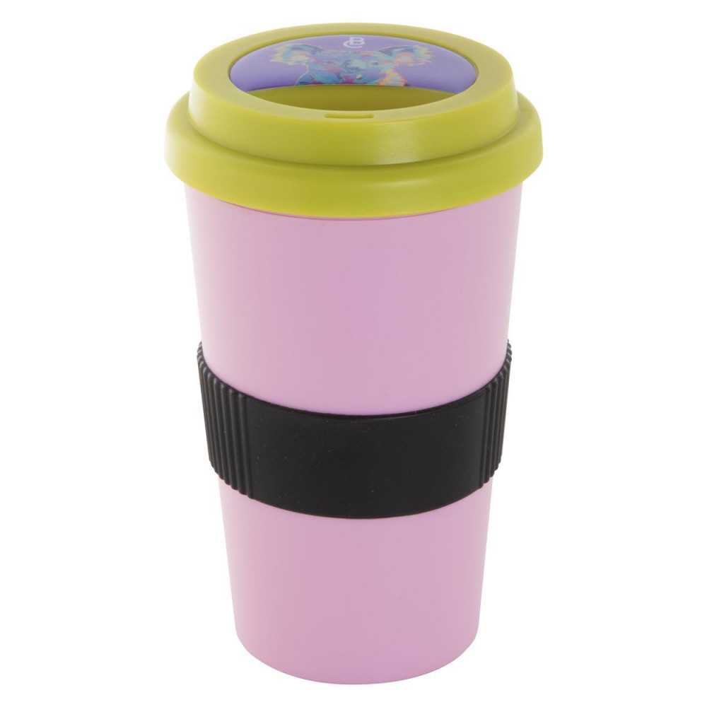 Własnego projektu kubek termiczny plastikowy z dwoma ściankami, pokrywką pitną i silikonowym uchwytem. Poj. 400ml, Min. Zam. 50szt
