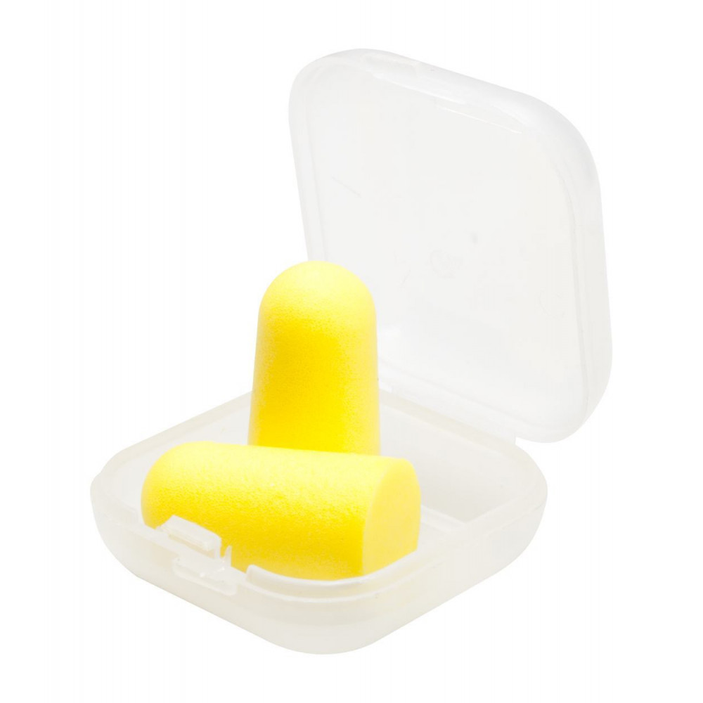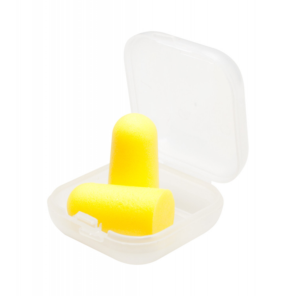 Kolorowe zatyczki do uszu w plastikowym opakowaniu. Materiał: pianka EVA.