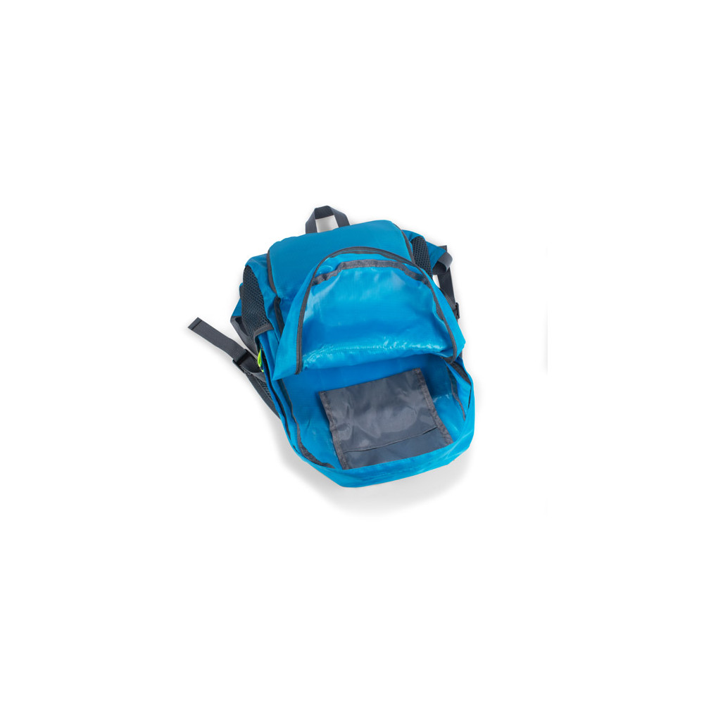 Funkcjonalny plecak, który można złożyć do niewielkich rozmiarów. Posiada jedną wewnętrzną kieszeń oraz trzy zewnętrzne - jedną zapinaną na zamek oraz dwie siateczkowe. Plecak wykonany z poliestru.