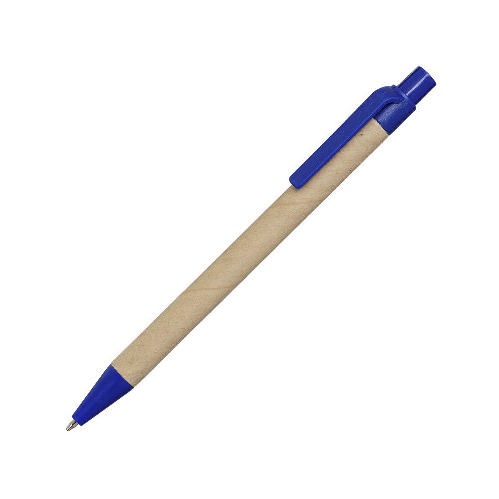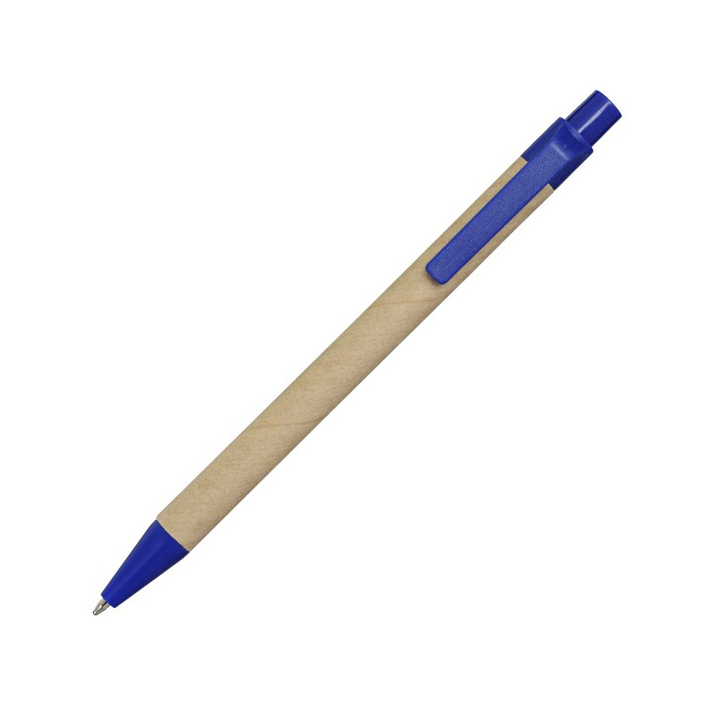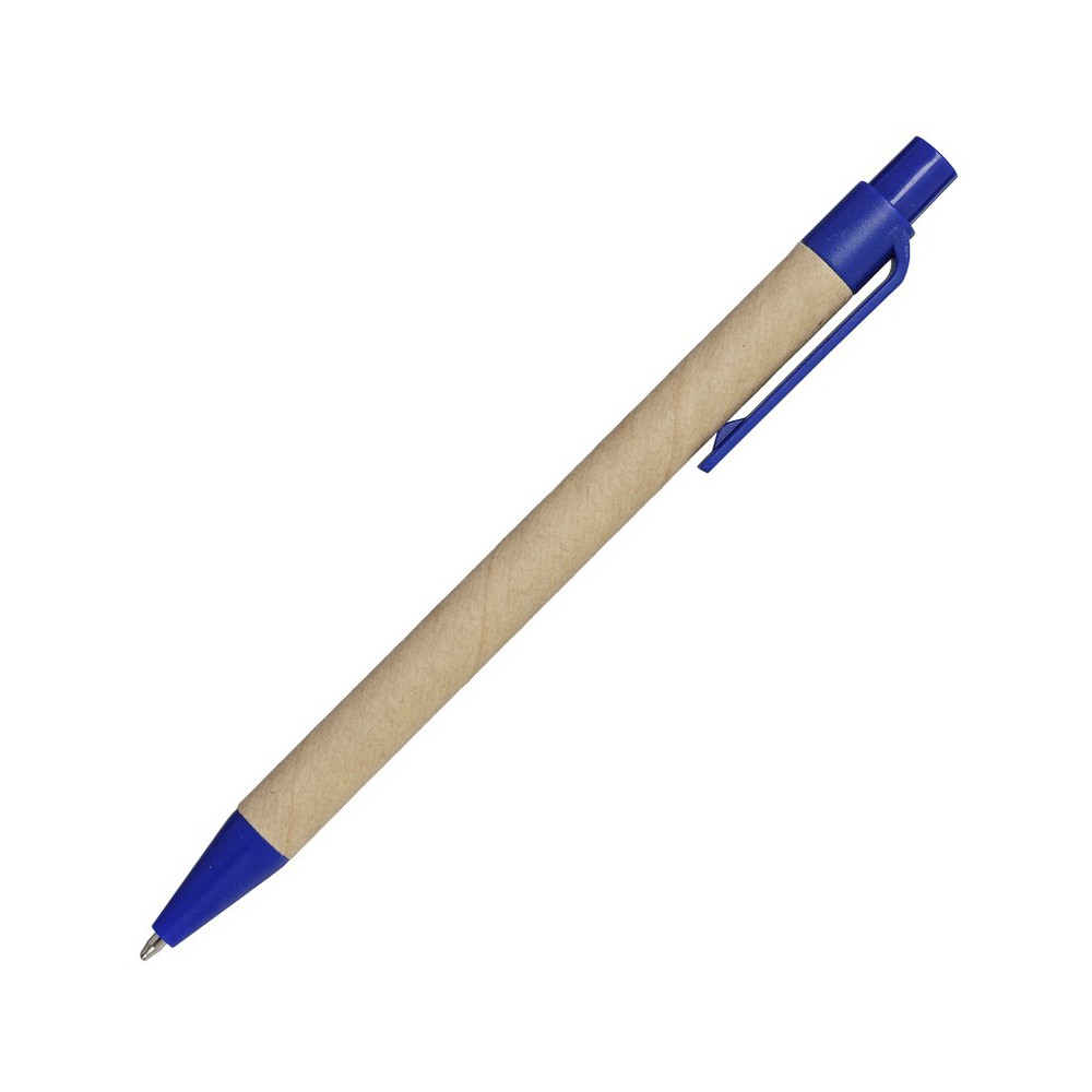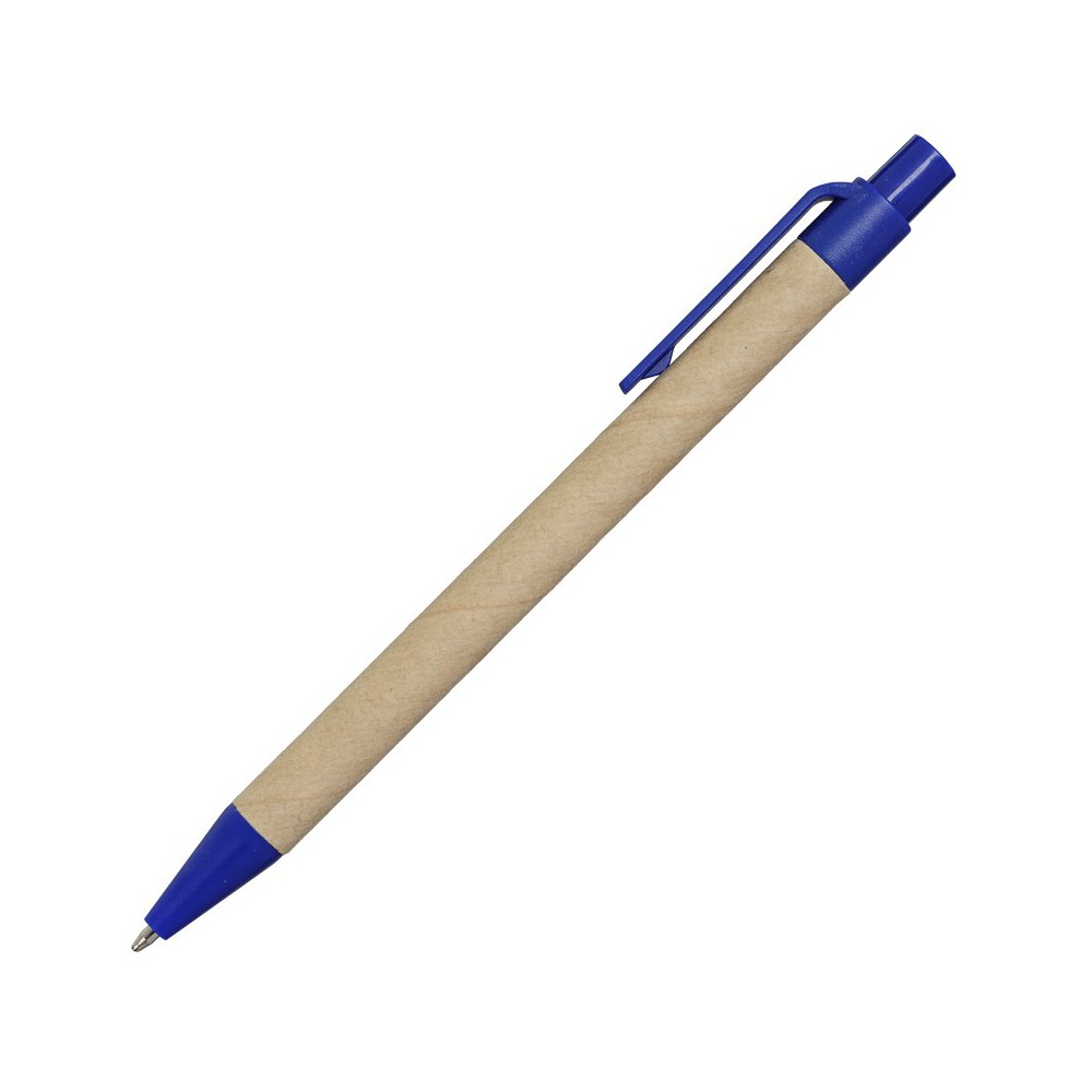 Ekologiczny długopis wykonany z kartonu z recyklingu. Skuwka, przycisk i końcówka wykonane z plastiku nadającego się do ponownego przetworzenia. Niebieski wkład.