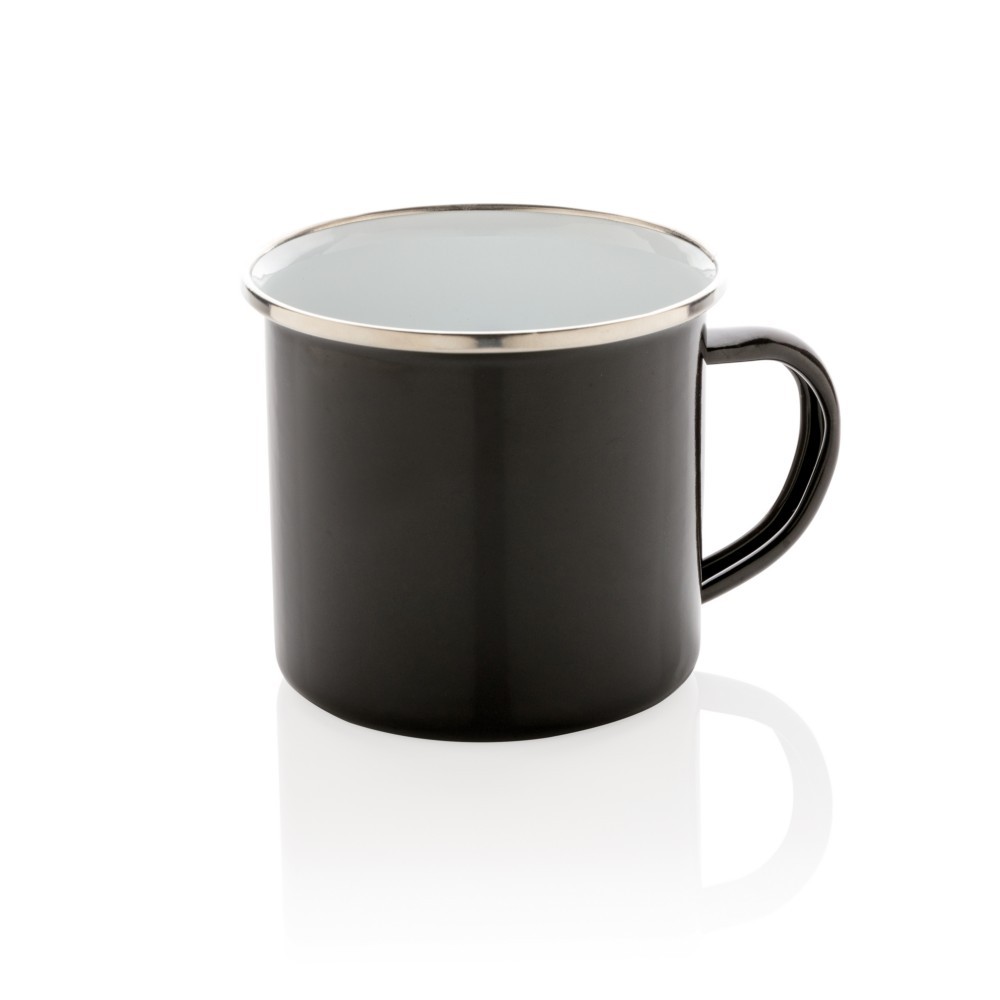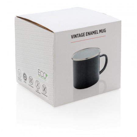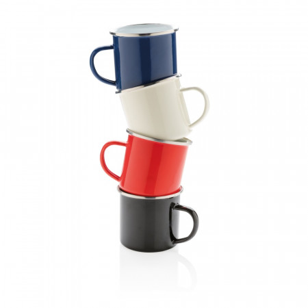 Lekki, emaliowany kubek o pojemności 350 ml w stylu vintage, jest idealny na kemping, piknik, czy też do codziennego użytku. Kubek jest wykonany ręcznie, w związku z czym może posiadać małe niedoskonałości, które tylko dodają mu charakteru. Pojedyncze ścianki.