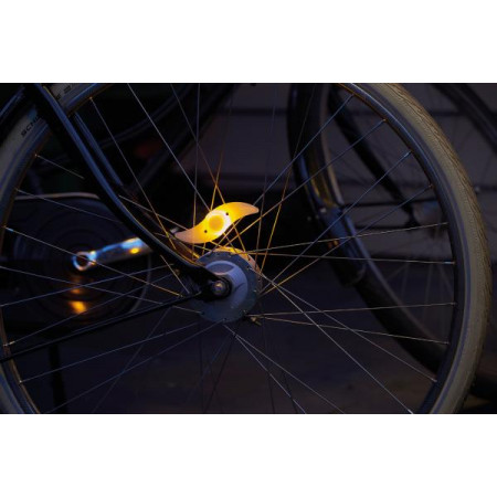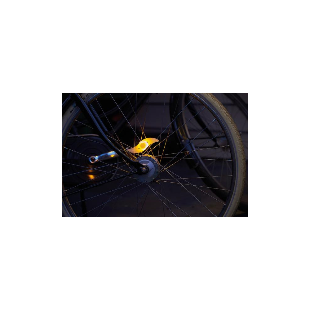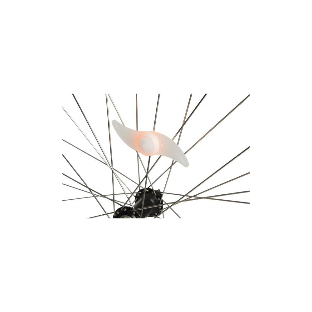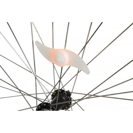 Lampka na szprychy rowerowe SWISH z pomarańczową diodą LED, 3 trybami świecenia (stałe, szybkie miganie, wolne miganie) - idealnie uzupełni oświetlenie roweru.