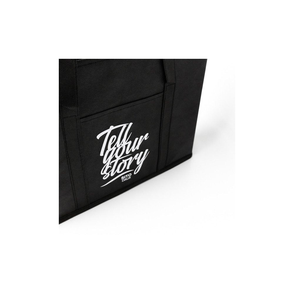 Składany usztywniany organizer samochodowy z długimi wygodnymi uszami i bocznymi uchwytami. Z boku kieszonka.