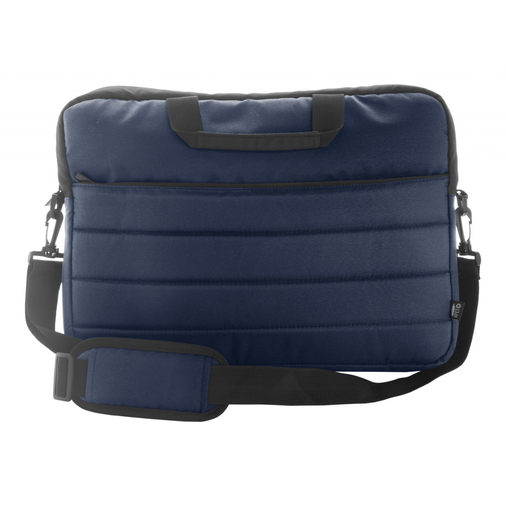 W pełni wyściełana torba na dokumenty RPET z przegrodami zapinanymi na zamek, wyściełaną przegrodą na laptopa (15"), paskiem do walizki i regulowanym paskami na ramiona. Poliester 300D RPET. Z metką RPET.