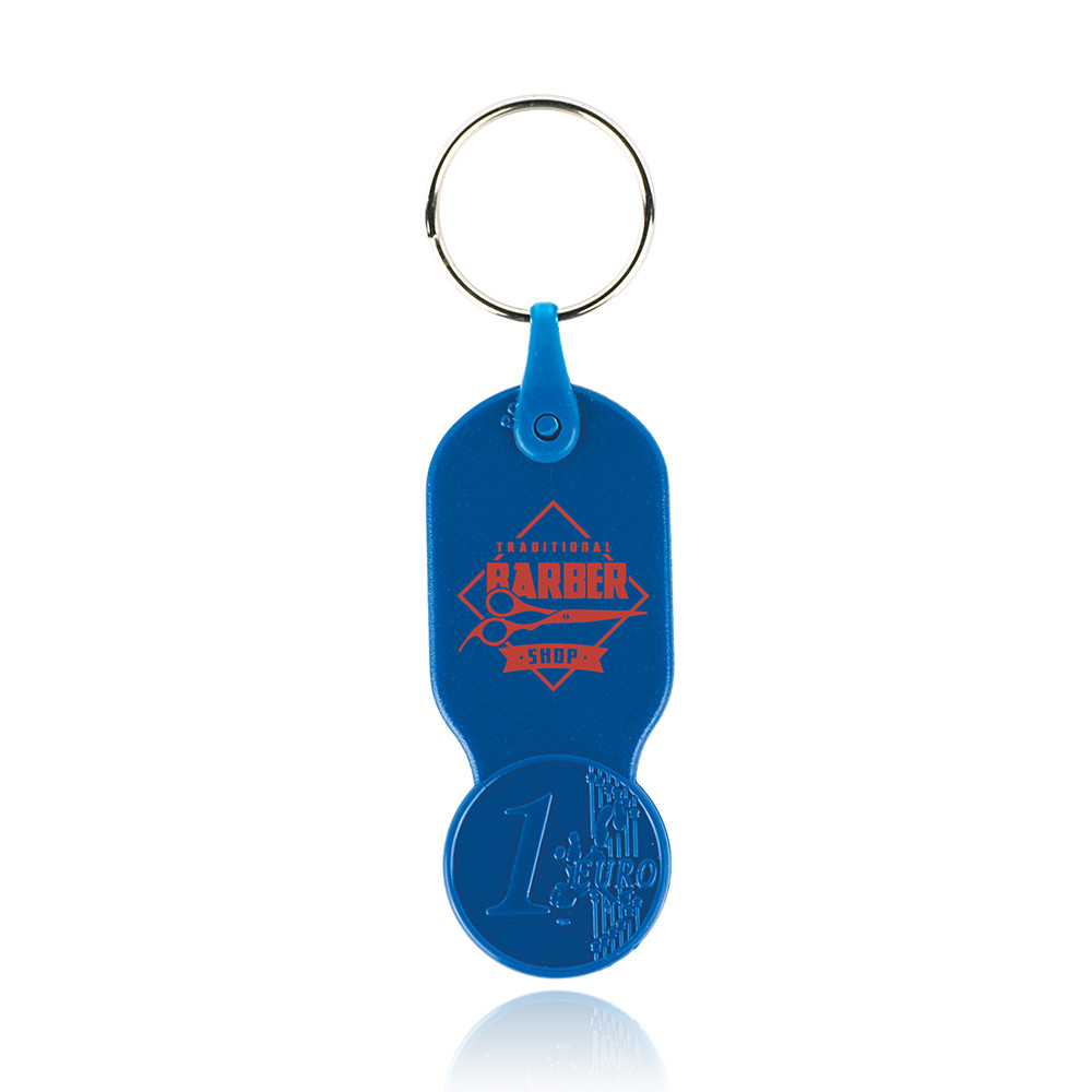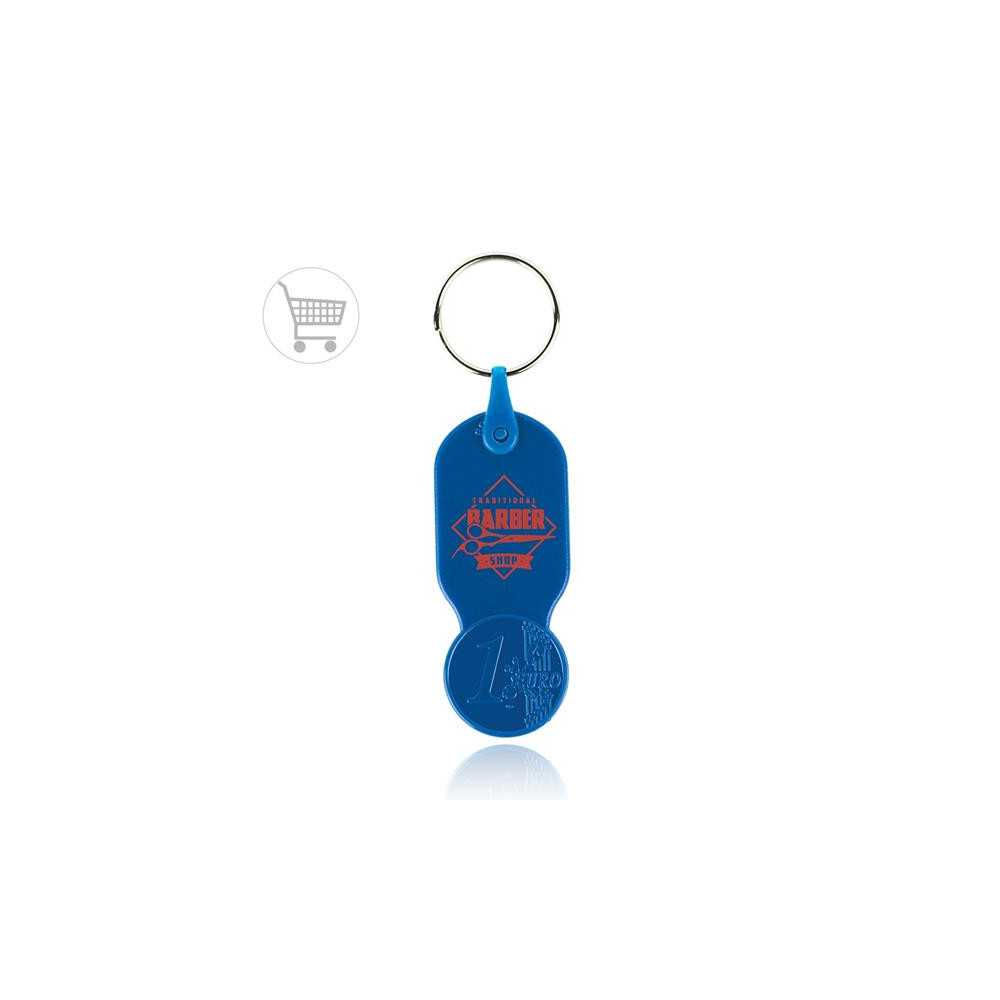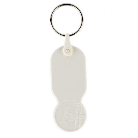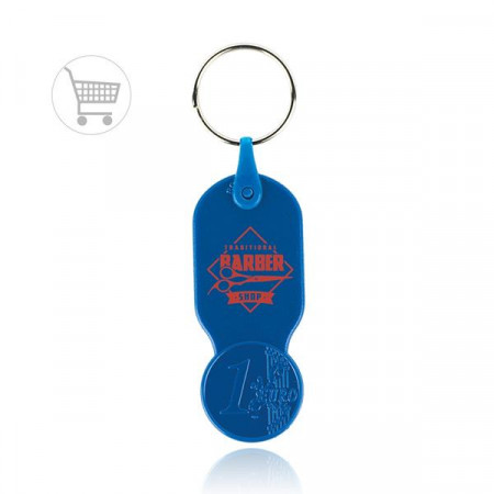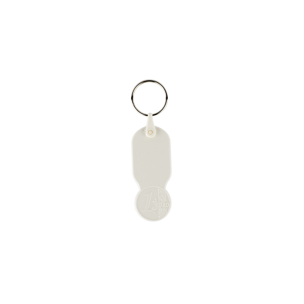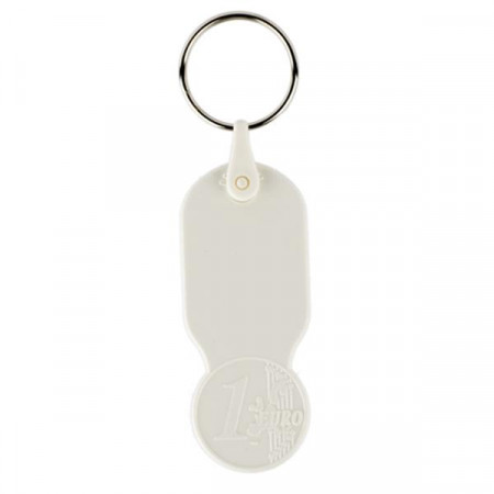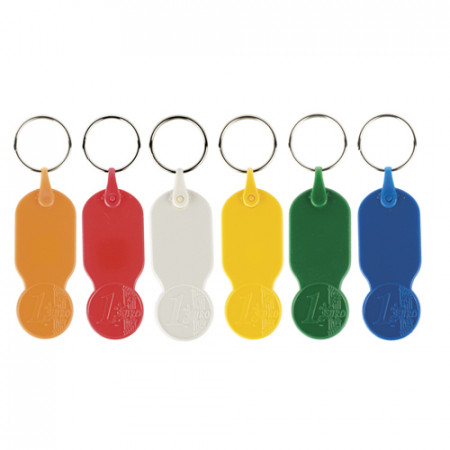 Plastikowy brelok z żetonem do wózka na zakupy (1 €).