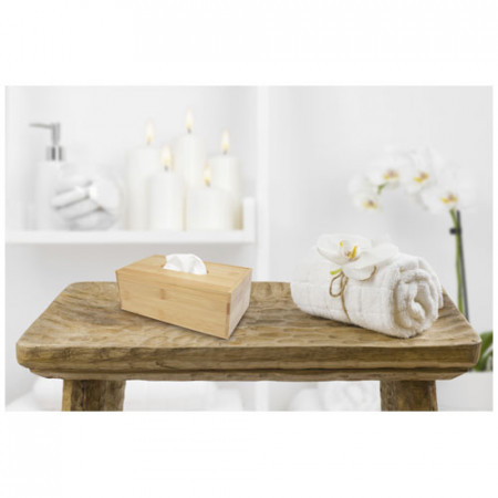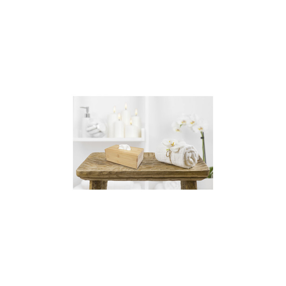 Pudełko wykonane z bambusa, dzięki czemu jest naturalnym i nowoczesnym dodatkiem do każdej aranżacji wnętrza. Pokrywka pudełka na chusteczki jest zaprojektowana z unoszonym wieczkiem, co ułatwia otwieranie i wymianę zawartości, gdy jest puste. Użyty bambus jest pozyskiwany i produkowany zgodnie z normami zrównoważonego rozwoju.