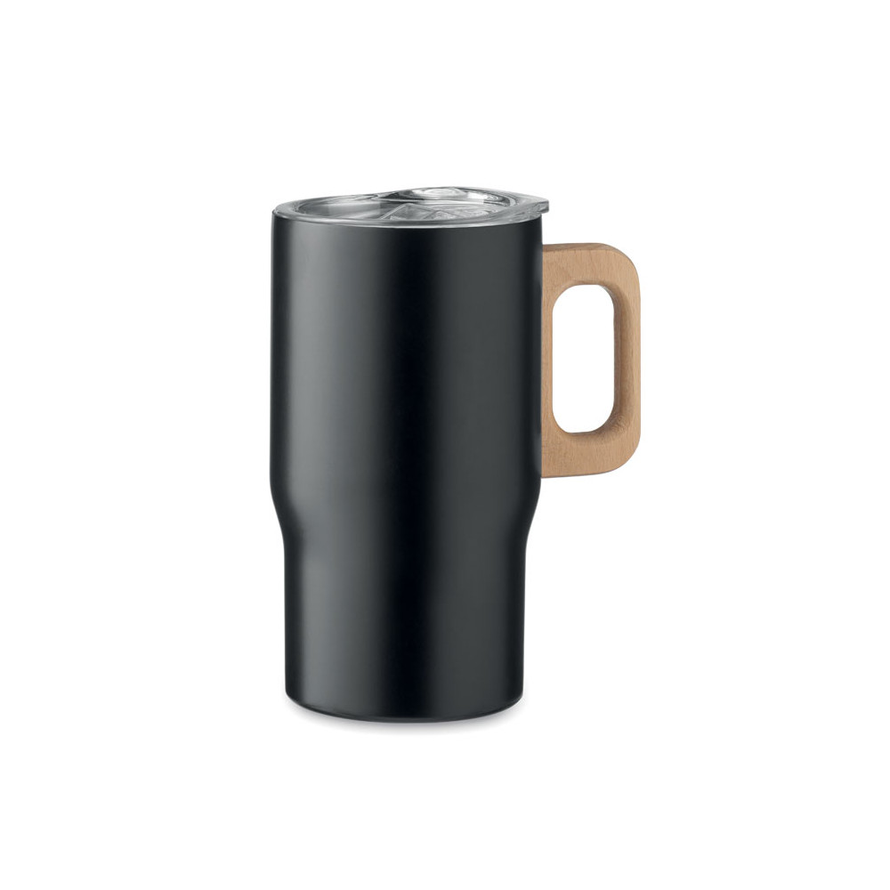 Kubek z podwójnymi ściankami z recyklingowanej stali nierdzewnej (90% stali nierdzewnej z recyklingu i 10% stali nierdzewnej) z drewnianym uchwytem. Pojemność: 350 ml.